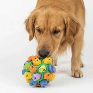 dog snuffle toy, food dispensing toy, dog treat dispenser, dog treat ball, treat dispensing dog toy, snuffle ball for dogs