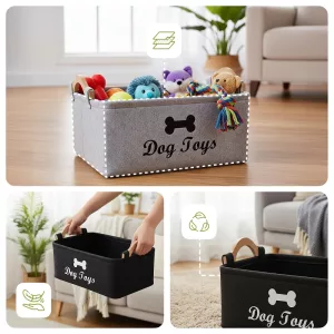 Jucăriile împrăștiate pot face camerele dezordonate și greu de curățat. Depozitarea Primdog oferă o soluție simplă, ajutându-te să faci ordine rapid. Mânerele rezistente îți permit să muți cutia cu ușurință de pe raft pe podea.