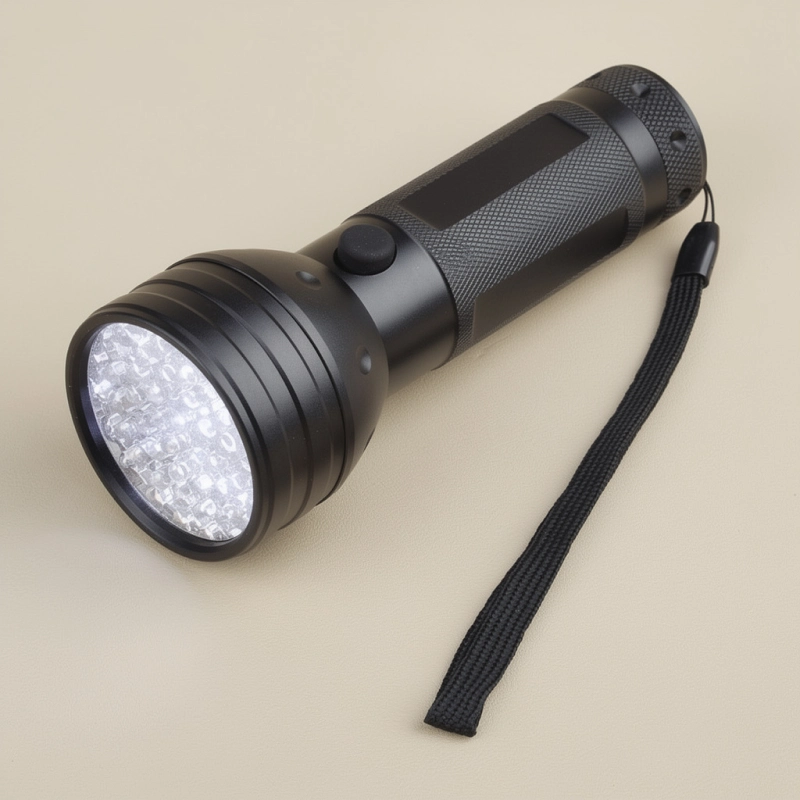 Lanternă mică și puternică, petele de câine sunt ușor de văzut.