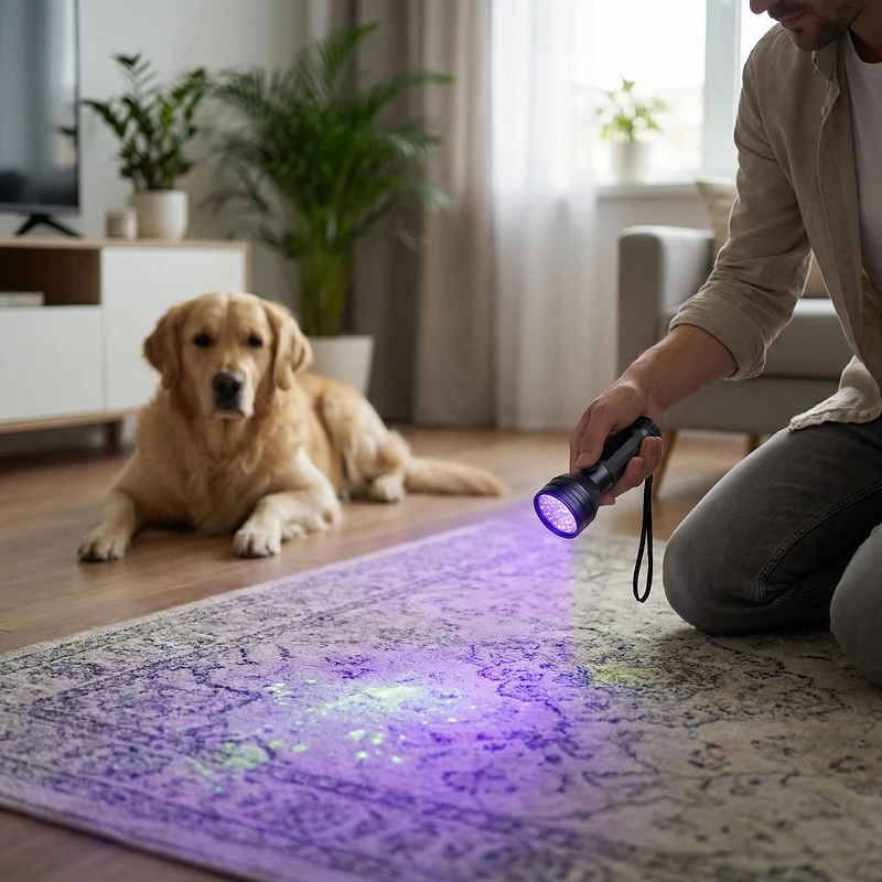 Această lumină UV m-a ajutat să găsesc toată urina de câine ascunsă pe covor. Acum casa mea miroase mult mai bine! Foarte ușor de folosit.