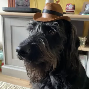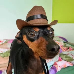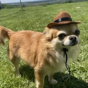 Cățelușul meu nu a arătat niciodată mai drăguț în această pălărie de cowboy.