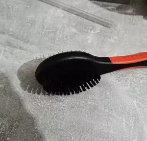 Perfect pentru utilizarea zilnică! Peria cu două fețe descurcă cu ușurință încâlcelile și blana căzută. Este bine realizată și confortabilă de ținut în mână. Blana câinelui meu arată fantastic!