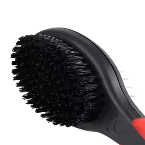 Pe o parte, perița densă îndepărtează eficient părul liber și descurcă nodurile. Cealaltă parte oferă o perie cu peri moi, perfectă pentru finisare și netezirea blănii.