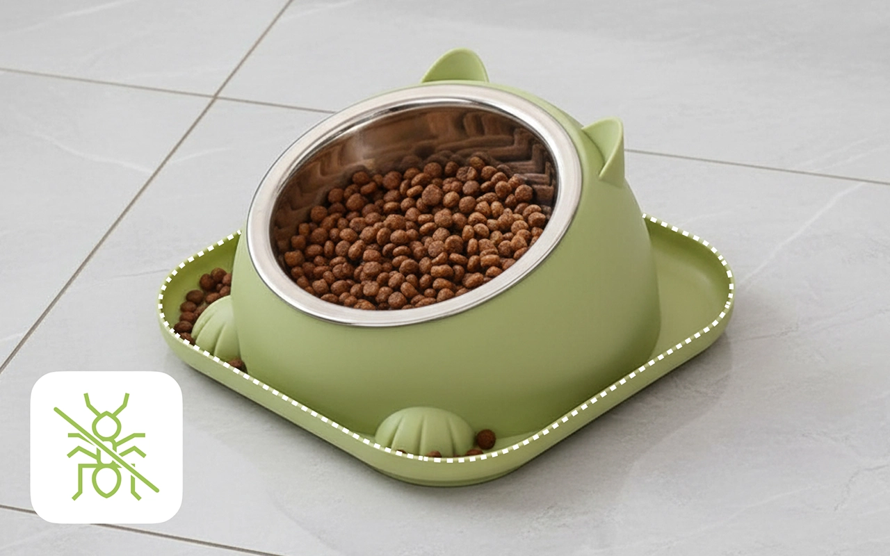 Fiecare masă rămâne ordonată, făcând viața mai ușoară în fiecare zi. Designul ridicat ajută animalele să mănânce confortabil, fără să-și rănească gâtul. Curățarea durează câteva secunde, astfel încât ai mai mult timp liber. Construcția inteligentă, rezistentă la furnici, ține vizitatorii nedoriți la distanță.