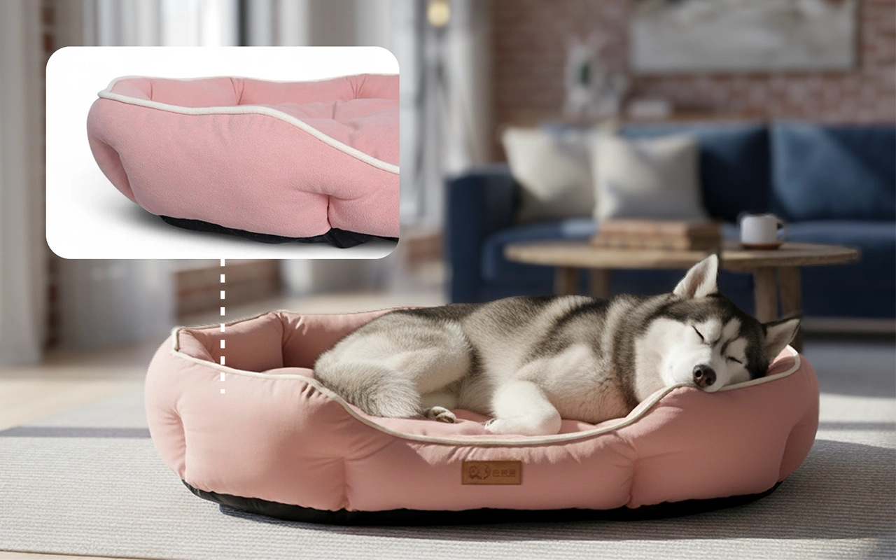 Marginile ridicate oferă protecție împotriva curenților de aer și a zgomotelor. Câinii se cuibăresc, simțindu-se protejați de stres sau griji.