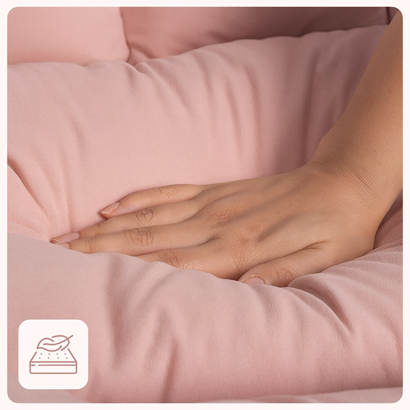 Acest cuib este foarte pufos. Câinele meu adoră să se cuibărească în el și pare mult mai liniștit acum. Salteaua păstrează bine căldura, mai ales în nopțile reci.