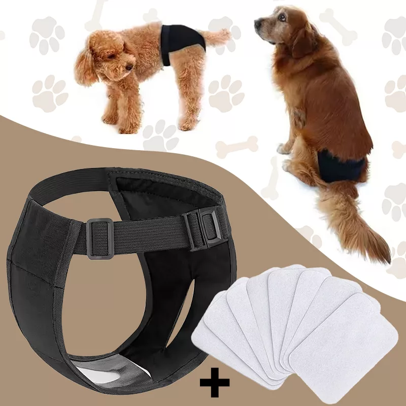 Scutecul pentru câini Primdog vine cu opt tampoane igienice, economisindu-ți bani.