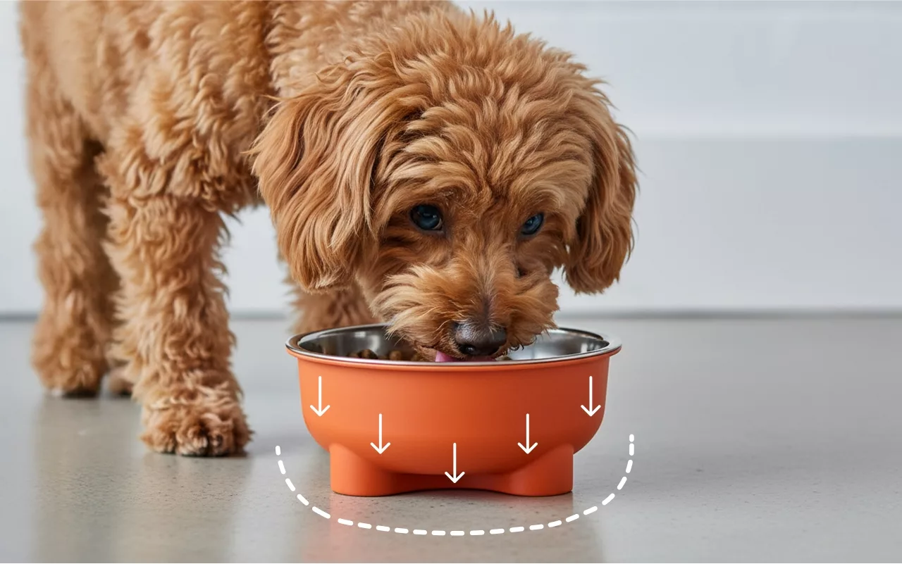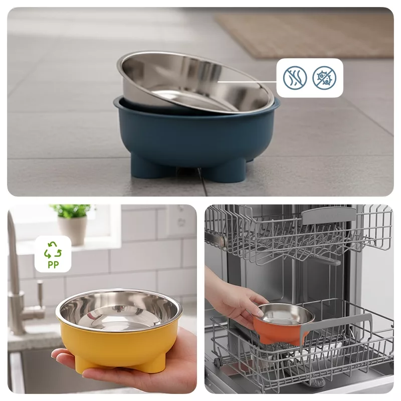 Patru picioare solide previn alunecarea, astfel încât nimic nu se răstoarnă sau nu se clatină. Animalele de companie mănâncă liniștite, în confort, fără murdărie pe jos.