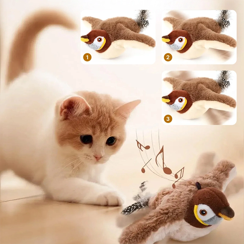 Melodiile realiste și aripile care fâlfâie trezesc rapid curiozitatea naturală. Pisicile rămân atente, concentrate și vesele ore întregi în interior.