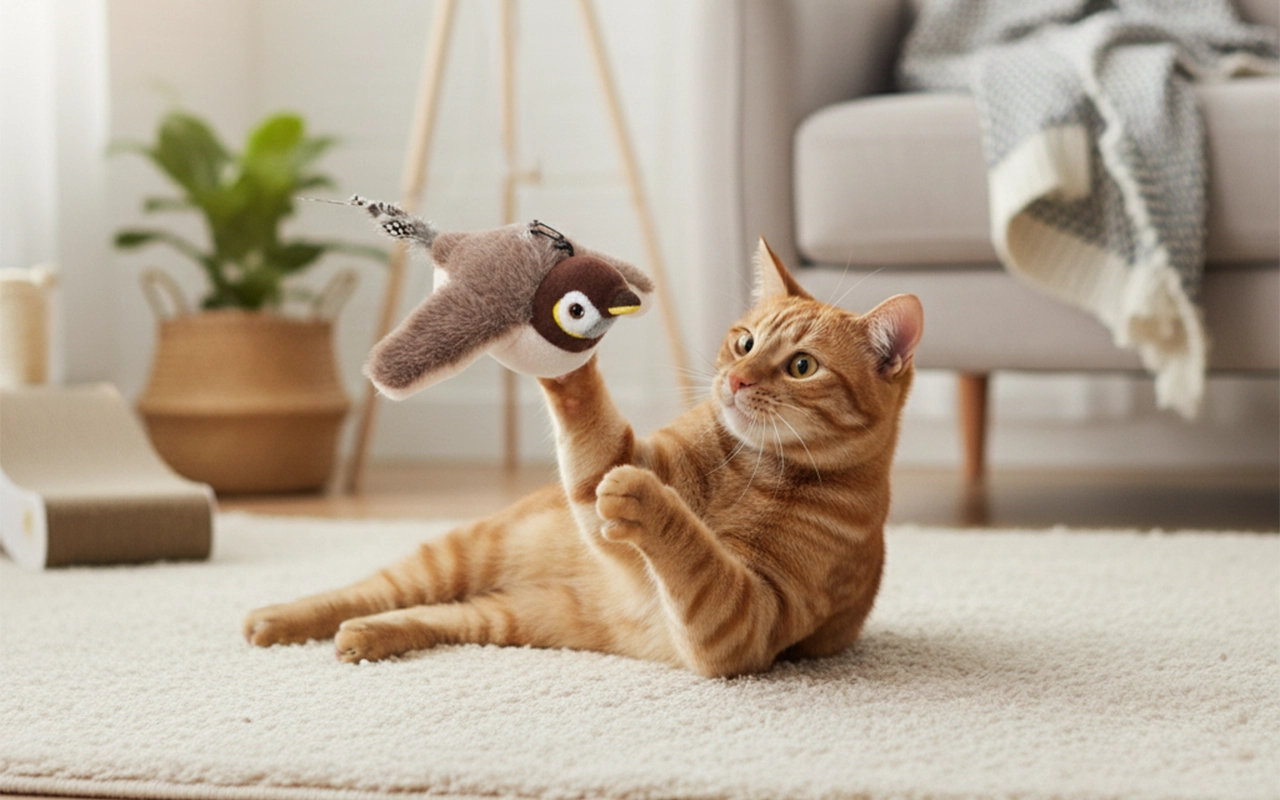 Jucărie Interactivă pentru Pisici – Pasăre Automatizată care Fâlfâie