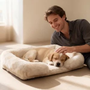 Rezistent și foarte pufos! Ciobănescul meu sare direct în pat după plimbări. Marginea ridicată îl ține la căldură, iar husa detașabilă se curăță ușor de murdărie.