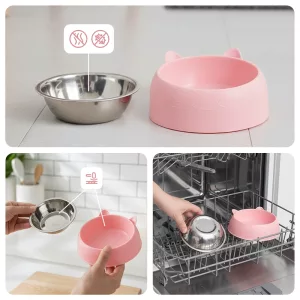 Insertul din oțel detașabil permite o spălare rapidă și temeinică. Mâncarea și apa proaspătă sunt mereu pregătite pentru animalul tău.
