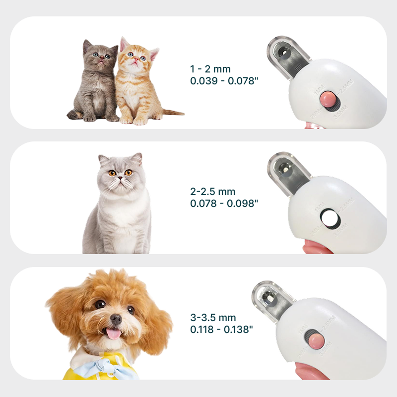 Alegeți cea mai bună mărime pentru orice lăbuță, mare sau mică. Un singur instrument funcționează pentru pisoi, căței și toate rasele.