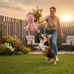 Jucărie din pluș tip caracatiță cu sfoară pentru câini