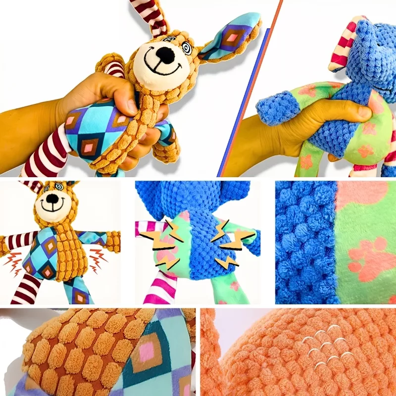 Jucăria noastră care scârțâie îl va ține pe animalul tău de companie activ, prevenind comportamentul distructiv. Salvează-ți pantofii și mobila de la ros, asigurând totodată distracție pentru câinele tău.