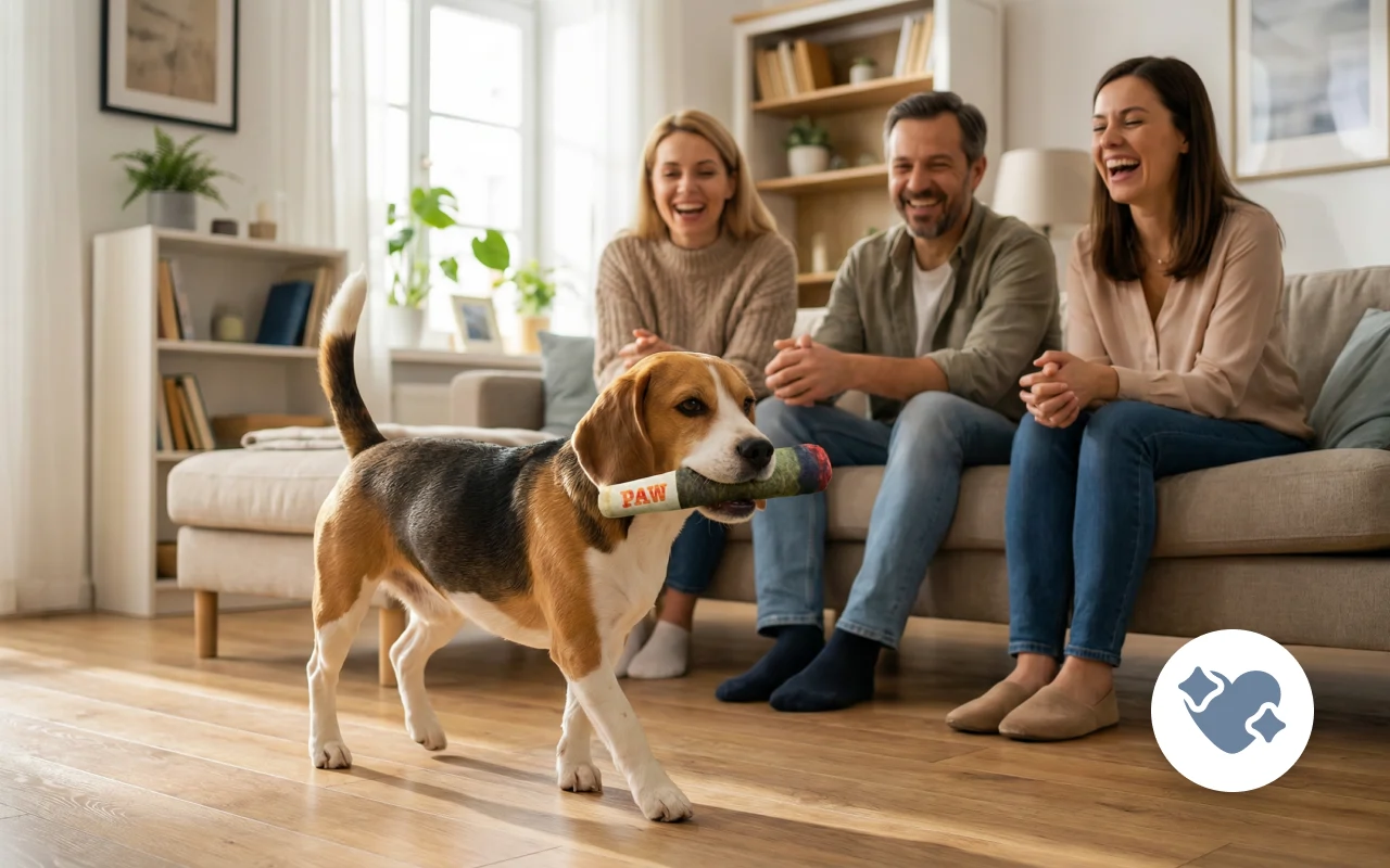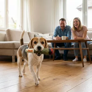 Bipuitorul ascuns din interior îi ține ocupați și activi pe cățeluși. Sunetul antrenant încurajează instinctele naturale și exercițiul sănătos.