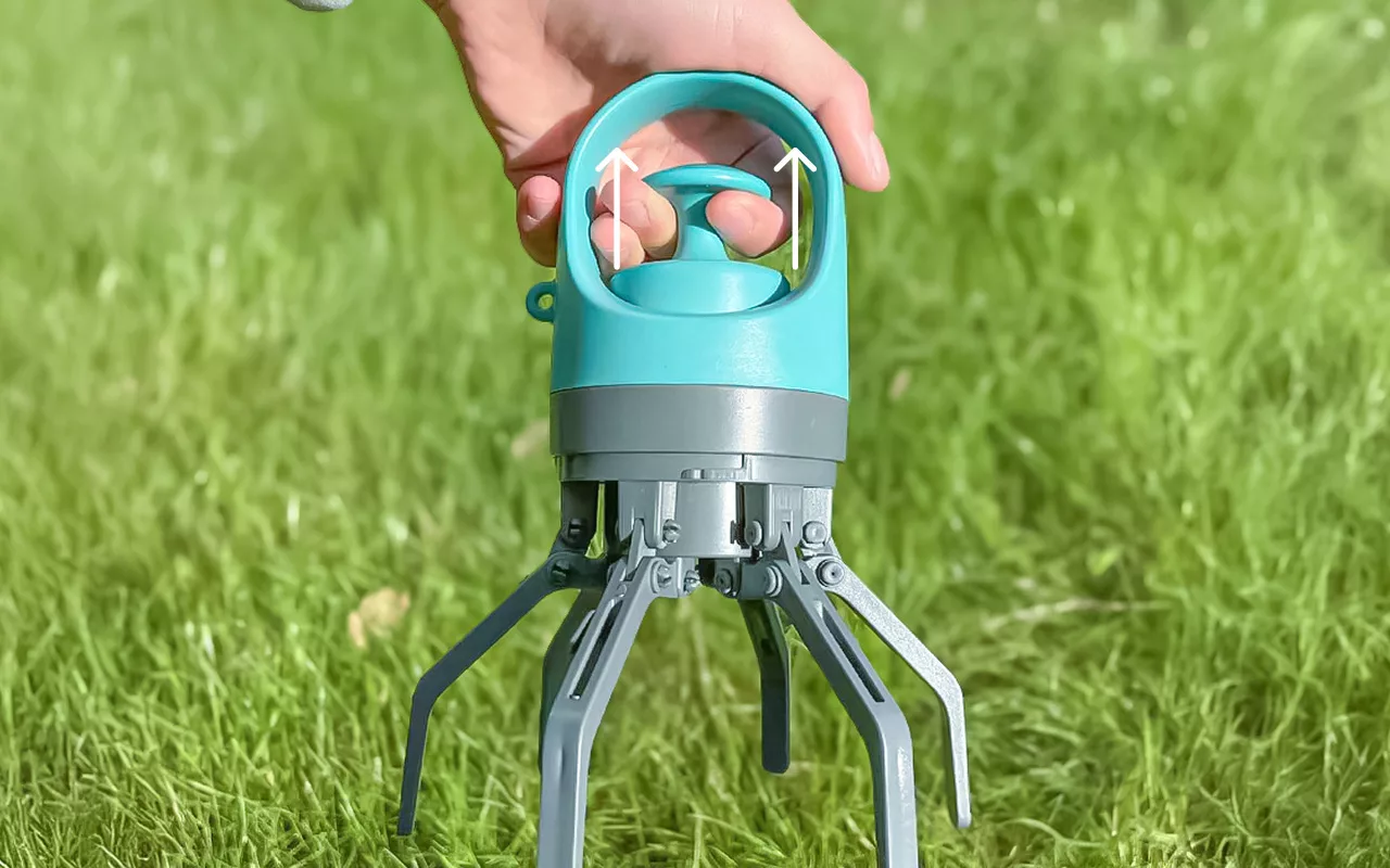 Adună excrementele cu o singură apăsare a mânerului. Scooperul Primdog funcționează pe iarbă, asfalt sau pământ.