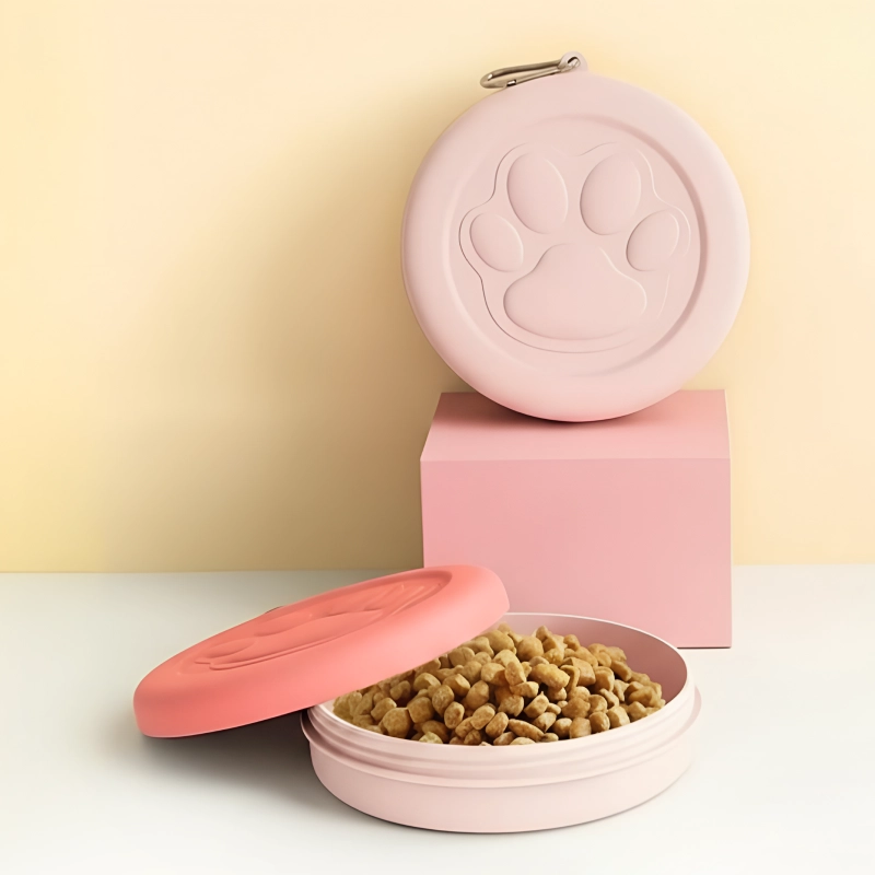 Bol portabil de călătorie pentru hrană și apă pentru câini cu capac