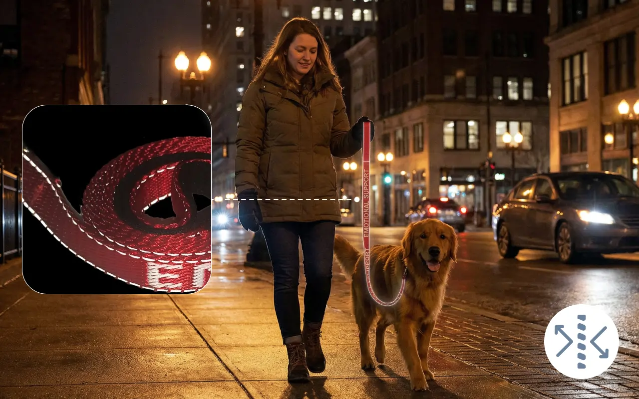 Îmi place mult controlul suplimentar pe care mi-l oferă lesa, mai ales când câinele meu devine prea entuziasmat. Cusătura reflectorizantă e perfectă pentru plimbările târzii.
