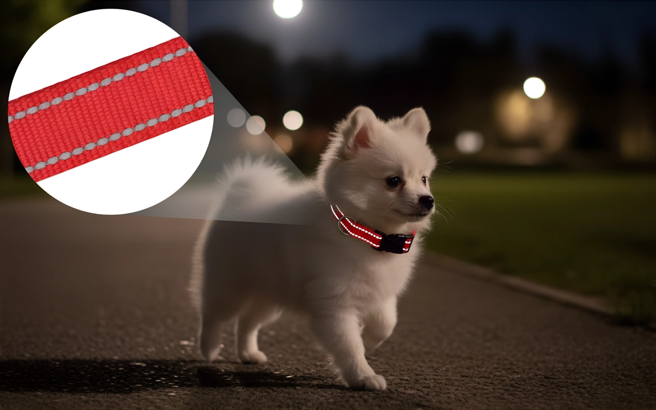 Cusăturile reflectorizante strălucesc puternic chiar și în condiții de lumină slabă. Animalele de companie rămân vizibile pentru șoferi și bicicliști după lăsarea întunericului.