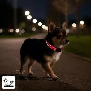 Această zgardă este confortabilă pentru cățelușa mea și îmi place cât de ușor o pot ajusta. Nu scapă din ea, iar părțile reflectorizante sunt foarte strălucitoare.