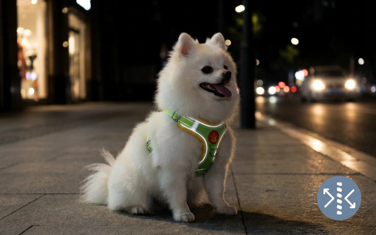 Cusăturile reflectorizante ajută cățelul să fie vizibil după apus. Lumina se reflectă pe margini, astfel încât șoferii îi observă mereu prezența.