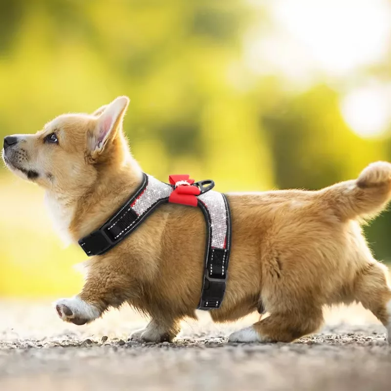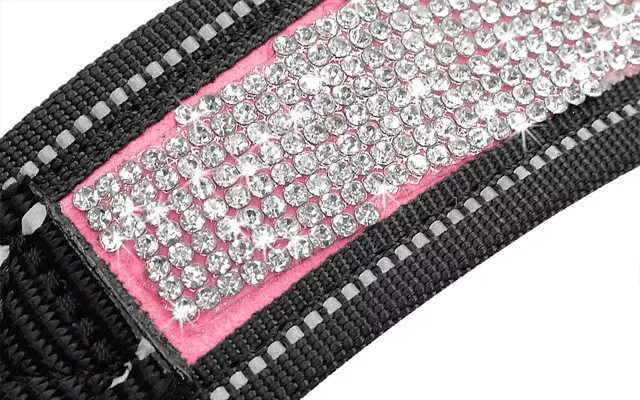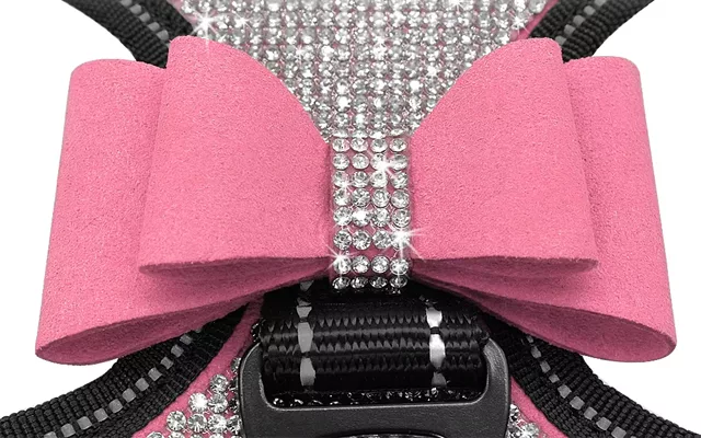 Împodobit cu pietre strălucitoare, acest ham este un accesoriu care atrage toate privirile. Pune-l pe câinele tău și pregătește-te să primești o mulțime de complimente!