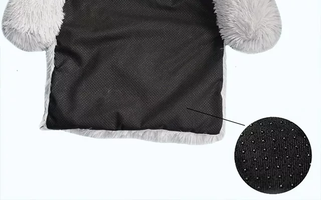 Acest pat pentru câini are o bază de cauciuc, care împiedică alunecarea de pe suprafață.