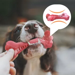 Infuzată cu aromă de carne, această jucărie de ros este irezistibilă pentru câini. Este ca o recompensă, dar fără calorii în plus.
