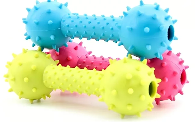 Jucărie de mestecat pentru câini, gantera din cauciuc cu sunet