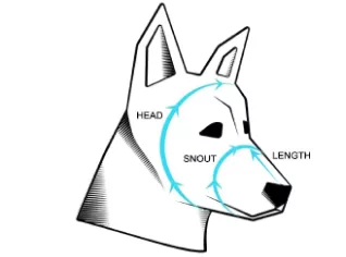 • Măsoară distanța de la un inch (2.5 cm) sub baza ochilor până la vârful nasului, de-a lungul podului botului.