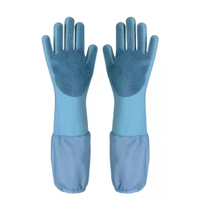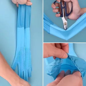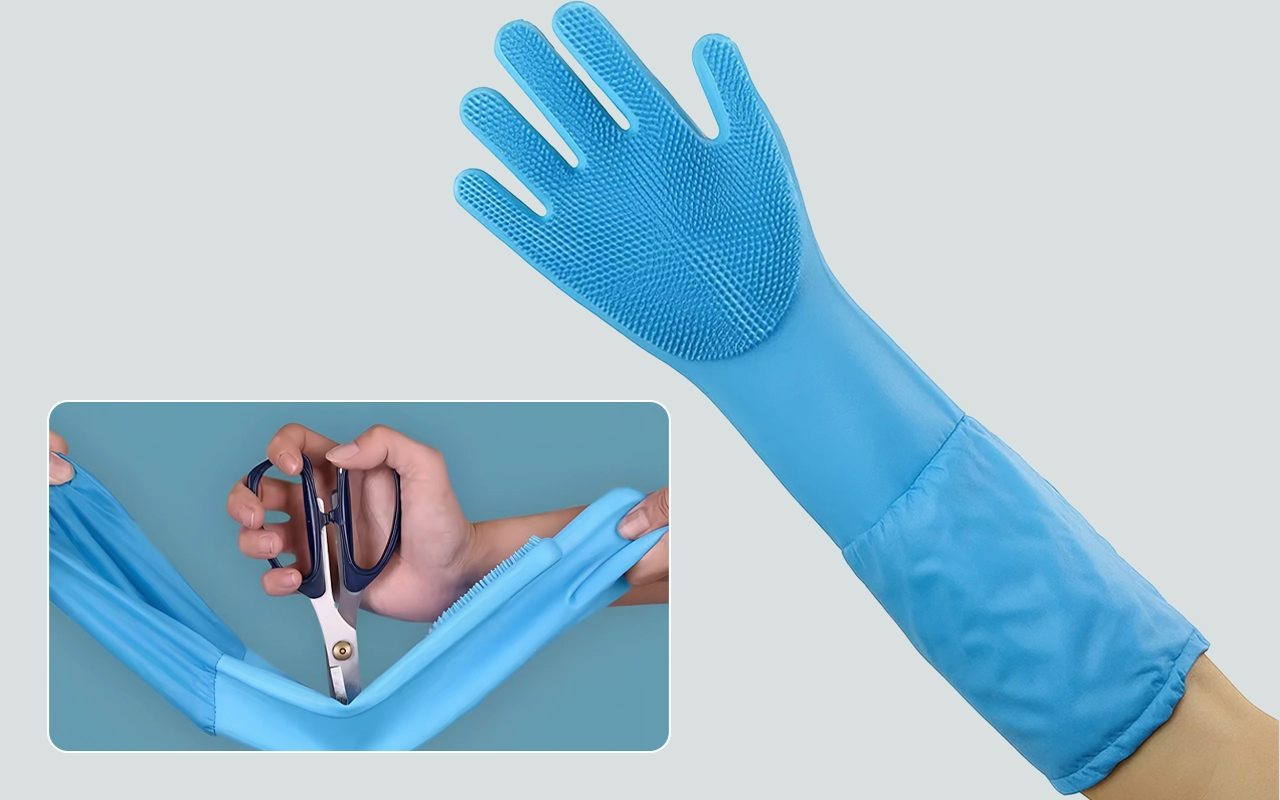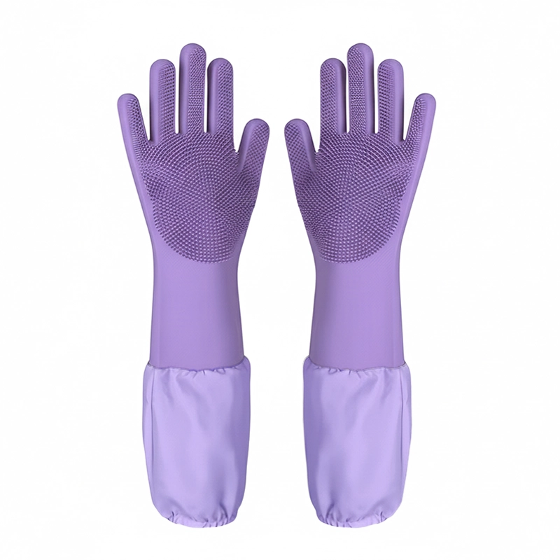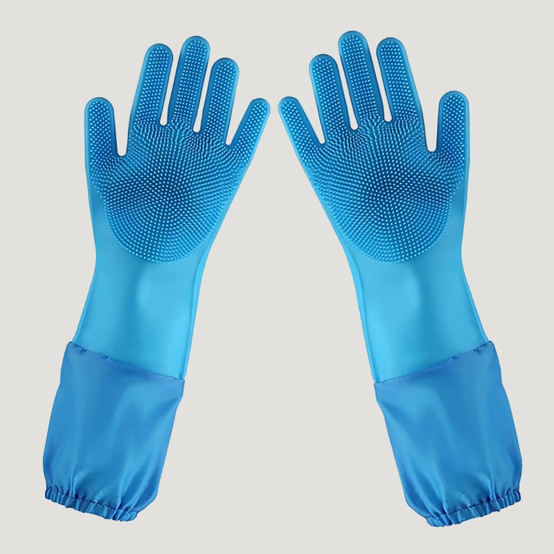 Siliconul rezistent menține pielea uscată și protejează brațele de apă. Nicio substanță chimică agresivă nu intră în contact cu pielea ta în timpul fiecărei spălări.