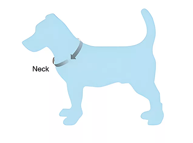 - 1. Pentru a măsura circumferința gâtului câinelui, înfășurați o bandă de măsurat în jurul bazei gâtului, chiar sub urechi.