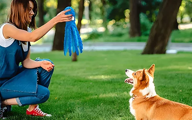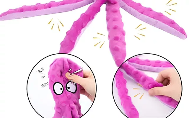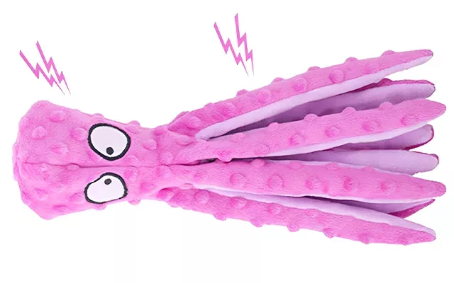 Jucărie de mestecat din pluș cu caracatiță care scârțâie pentru câini