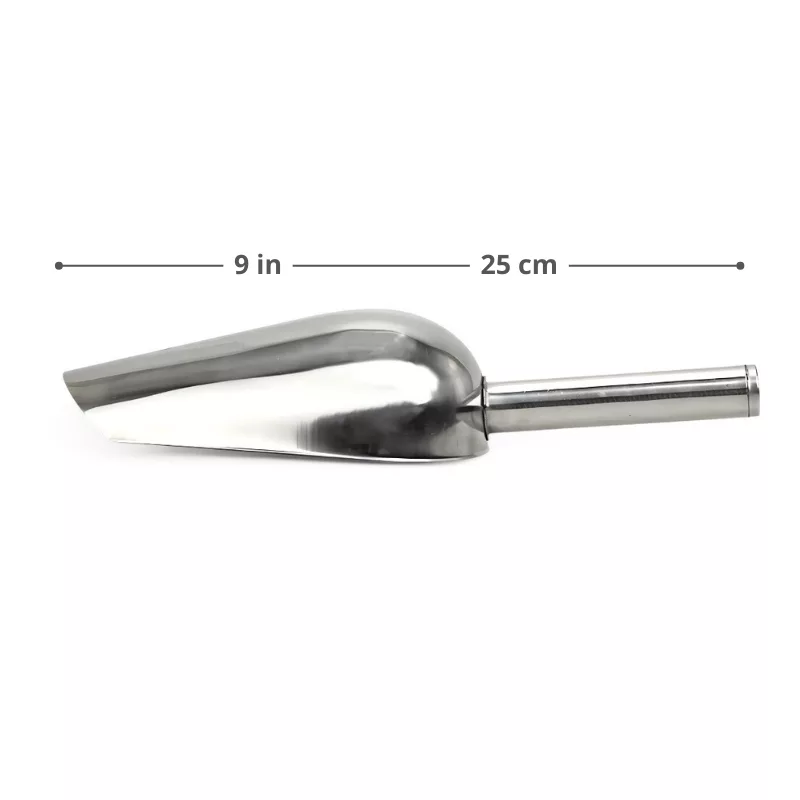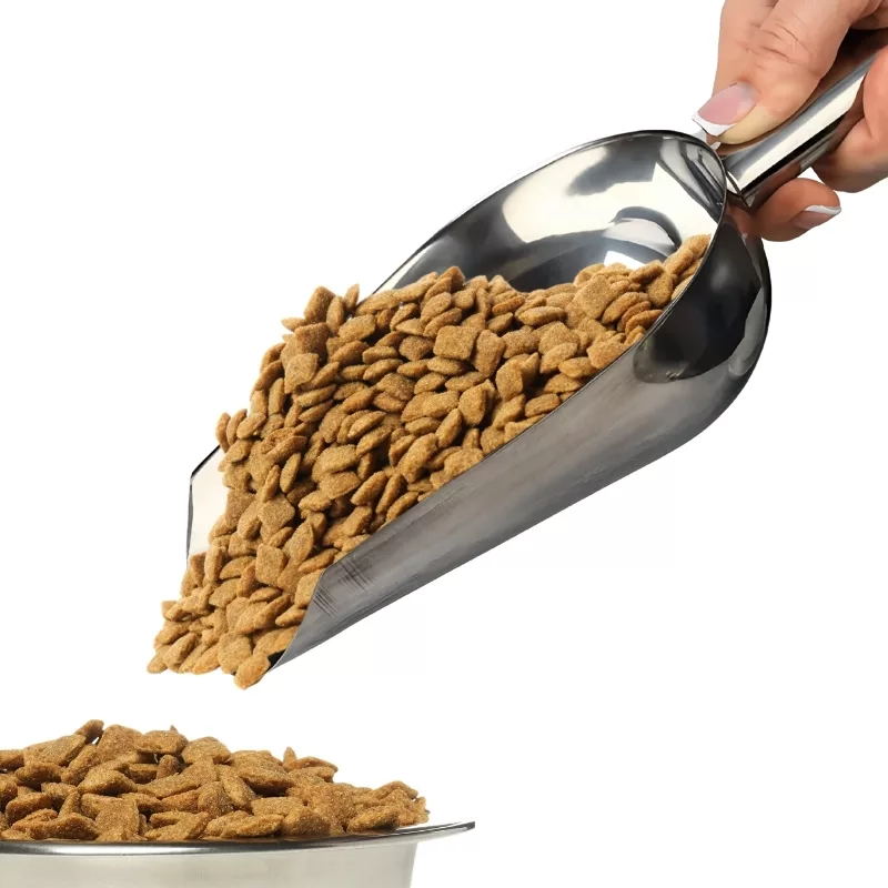 Mânerul său ergonomic asigură o prindere sigură, făcând ușoară dozarea hranei pentru animale.