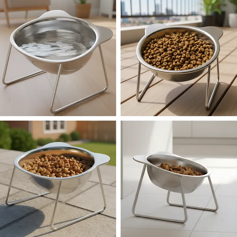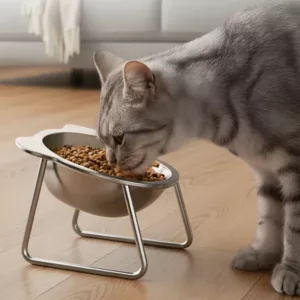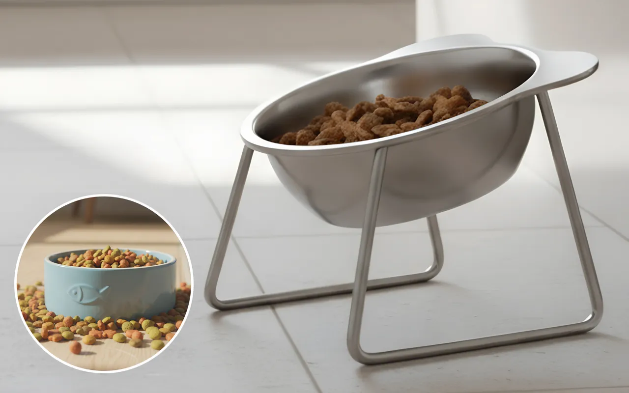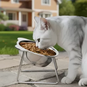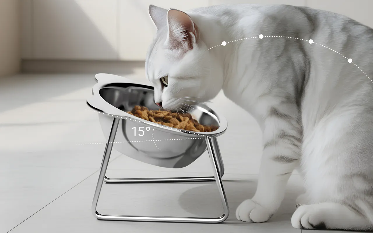 Bol pentru pisici din oțel inoxidabil înclinat cu suport – Hranitor înălțat pentru animale