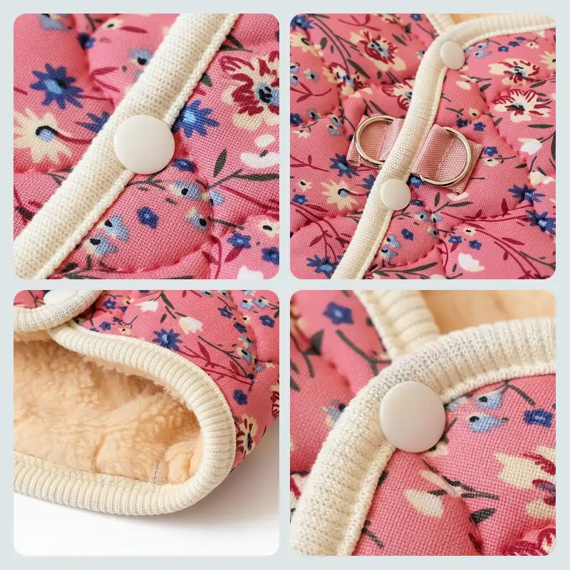 Primdog aduce confort în zilele reci printr-un design isteț. Căptușeala moale din fleece ajută cățeii să se simtă rapid protejați afară. Fiecare jachetă este prevăzută cu nasturi de siguranță pentru o îmbrăcare ușoară. Modelele florale adorabile oferă farmec la fiecare plimbare.