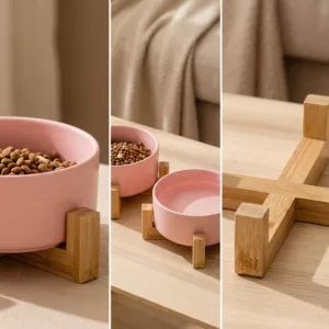 Suportul din bambus ține totul la loc în timp ce animalele de companie se bucură de mâncare. Fără alunecări sau răsturnări pentru liniștea tuturor.