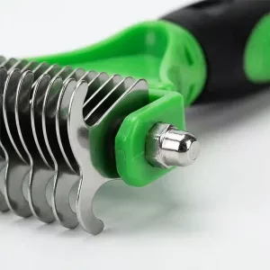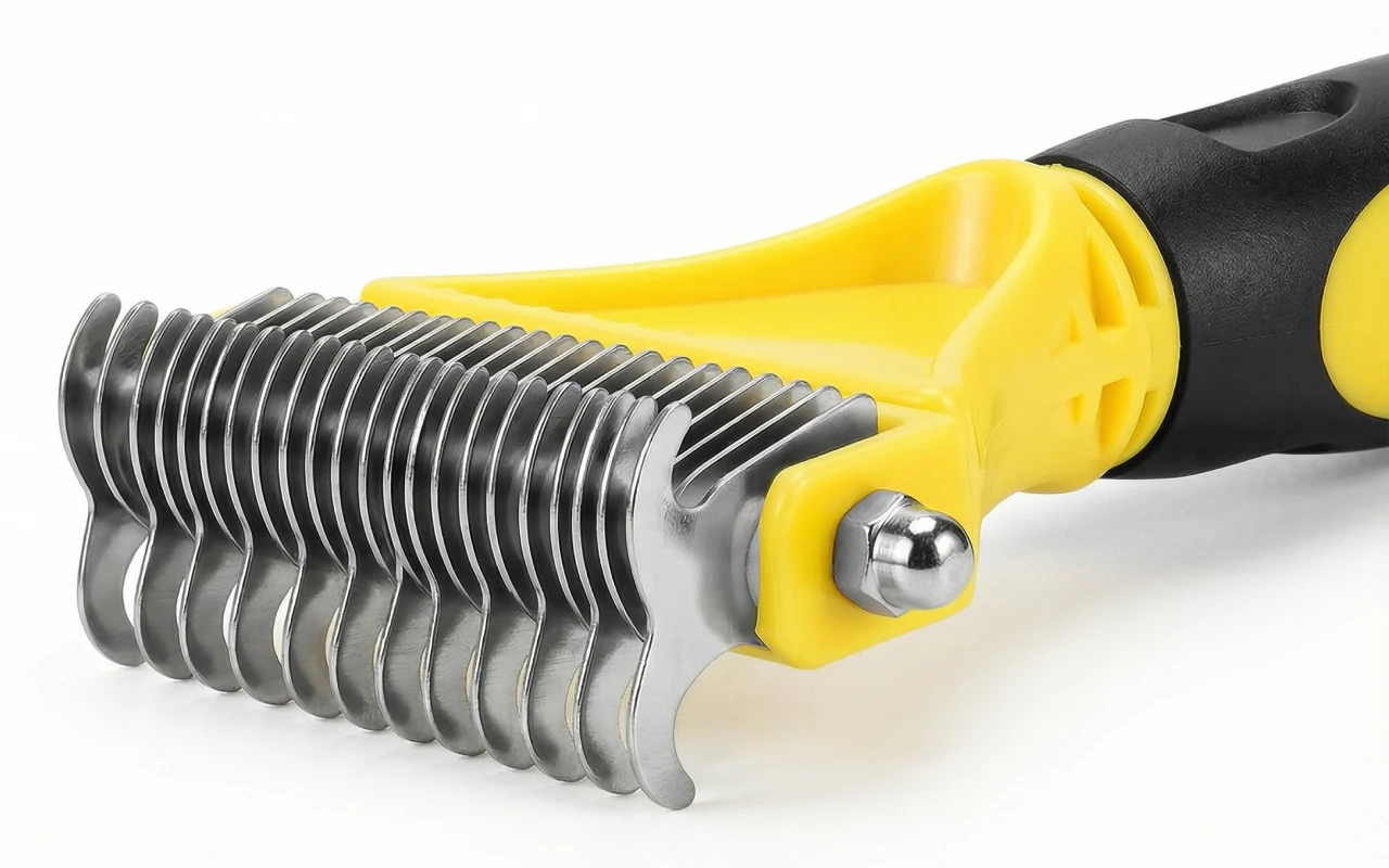 Îmi îngrijesc câinele acasă acum. Grebla din oțel inoxidabil elimină subpărul, o lasă lucioasă, iar mânerul se simte sigur chiar și când am mâinile umede.