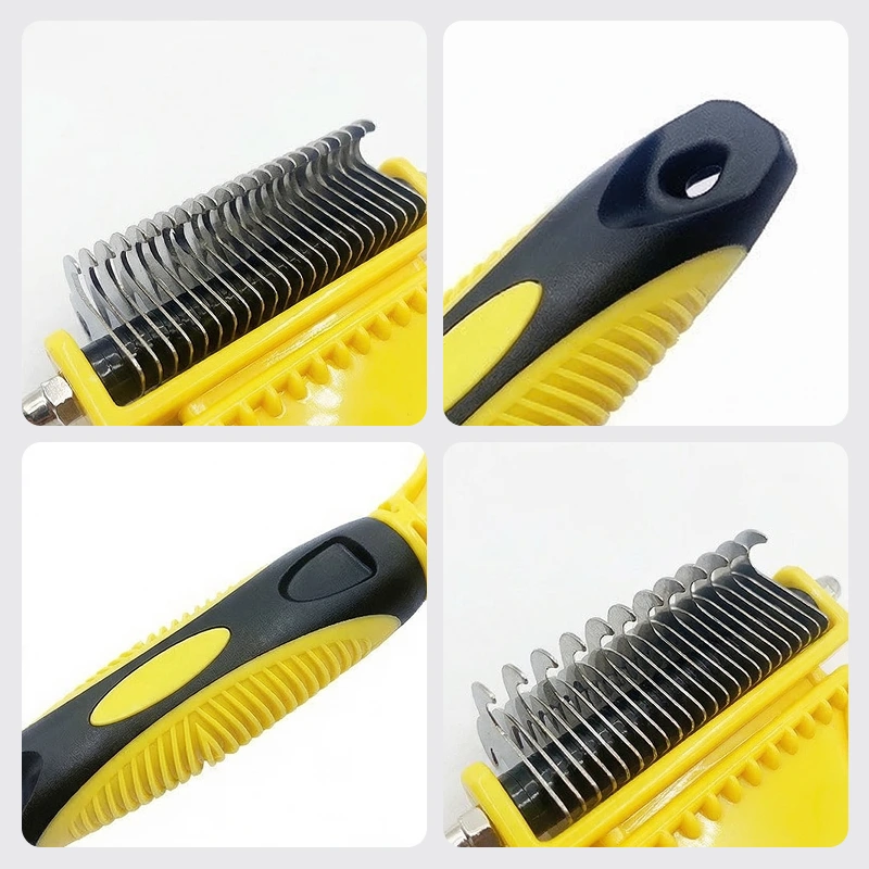 Perie cu două fețe din oțel inoxidabil pentru descurcarea blănii câinelui, pieptene pentru desnodare și îndepărtarea părului căzut