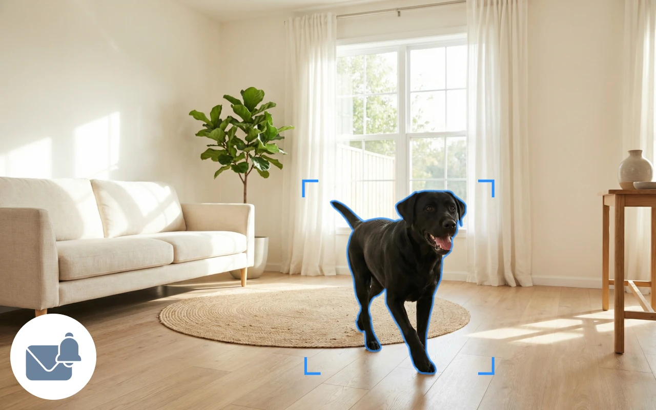 Primești actualizări instantanee când este detectată mișcare acasă. Zonele personalizate opresc alarmele false cauzate de activitățile zilnice.