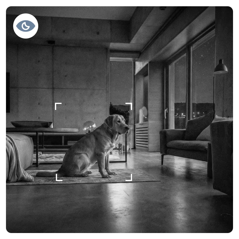 Fiecare moment acasă rămâne în siguranță, indiferent unde te afli. Primdog Slim păzește animalele de companie și persoanele dragi în orice oră. Știi mereu ce se întâmplă, chiar și în întuneric total. Alerta rapidă previne îngrijorările înainte să apară probleme reale.
