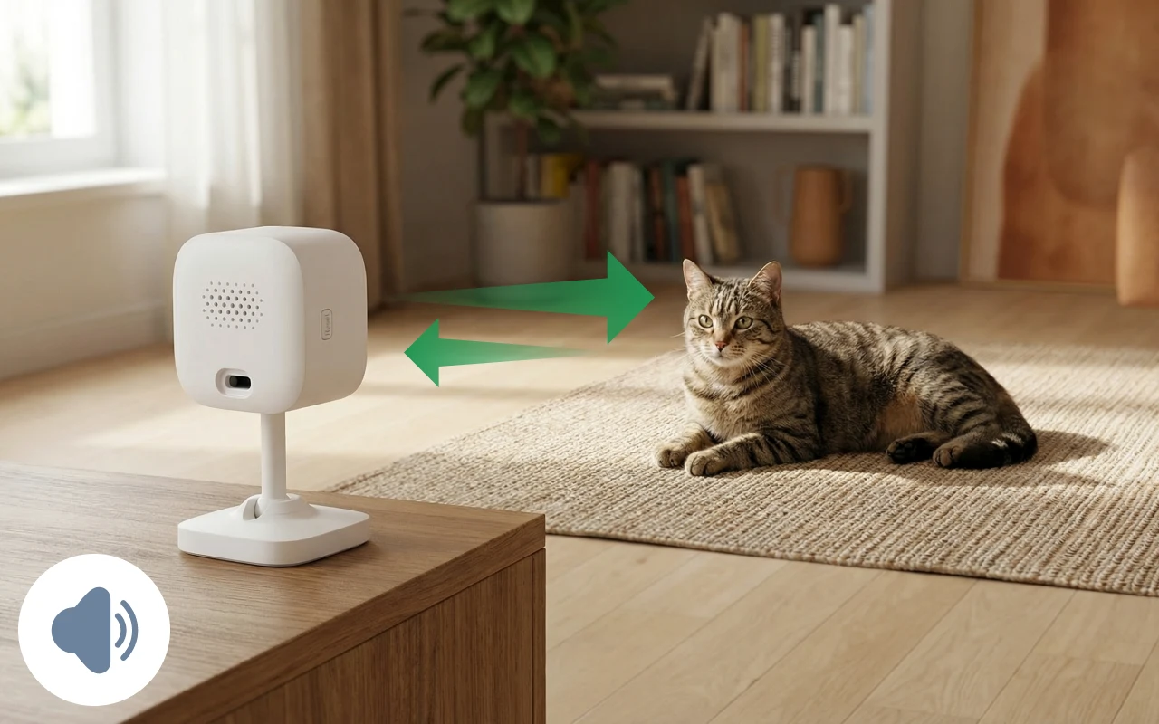 Vorbește prin camera Primdog și ascultă răspunsurile familiei tale. Liniștește animalele de companie sau dă instrucțiuni oriunde te-ai afla.
