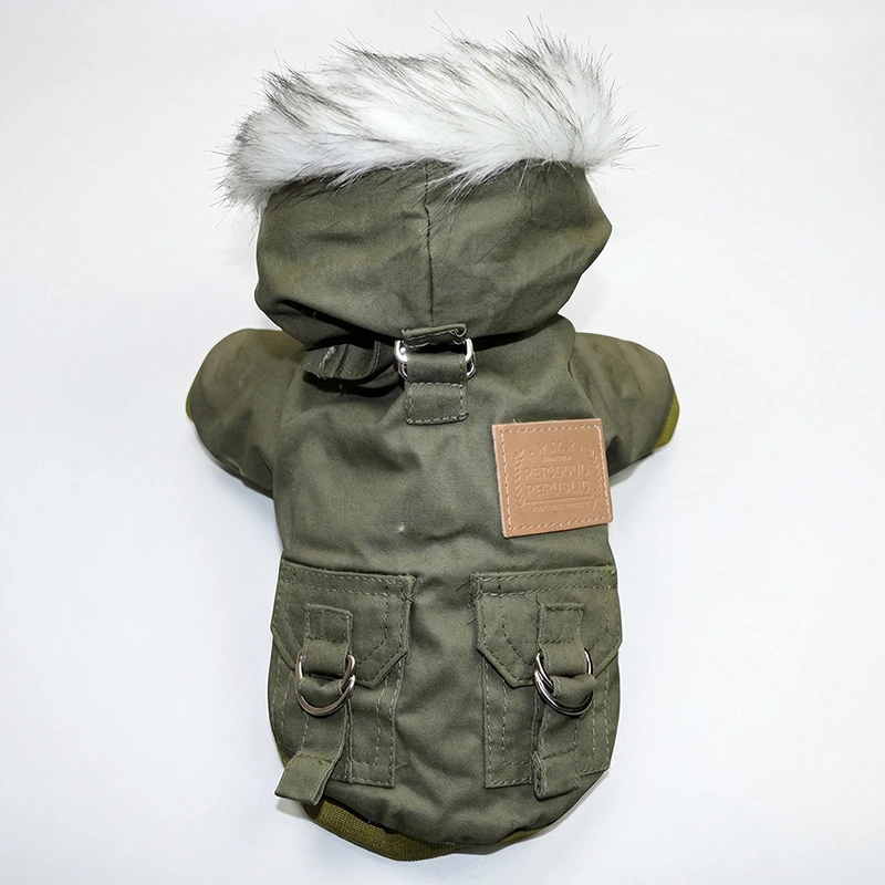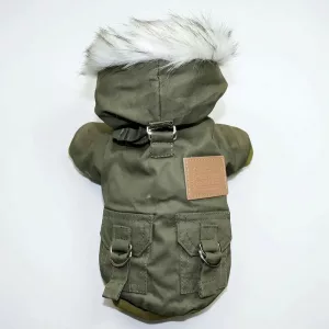 Geacă călduroasă cu glugă pentru câini, impermeabilă, cu capse
