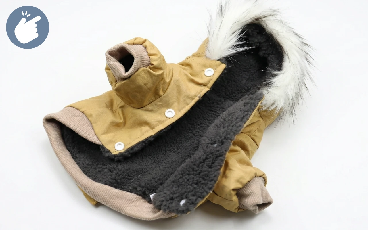 Să îi pun și să îi scot geaca este rapid și fără stres. Câinele meu nu are nicio reacție. Îl încălzește instantaneu!