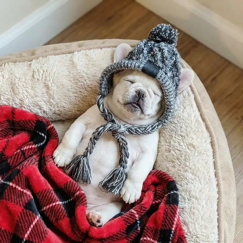 Mopsul meu arată atât de drăguț cu această căciuliță tricotată! Găurile pentru urechi sunt perfecte și îi țin capul mic cald chiar și în diminețile vântoase din parc.