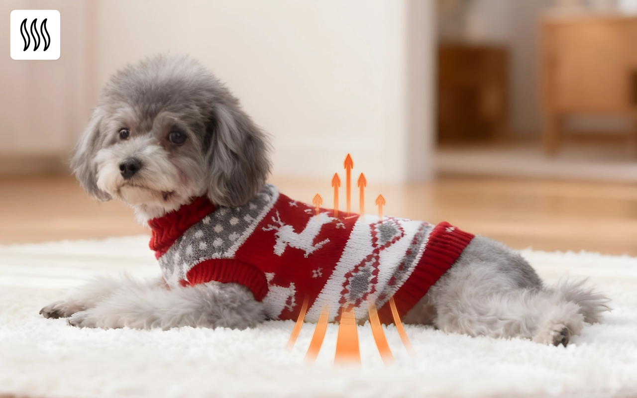 Tricotajul gros blochează briza rece să ajungă la blana sensibilă. Animalele se bucură de căldură și confort fie că se joacă, fie că se odihnesc.