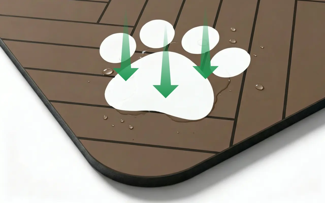 Vărsările nu mai reprezintă o problemă în timpul meselor acasă. Covorașul Primdog menține podeaua uscată și curată după fiecare masă. Designul său ingenios economisește timp la curățenie și reduce dezordinea zilnică. Bucură-te de colțuri ordonate unde animalele pot mânca, bea și relaxa.
