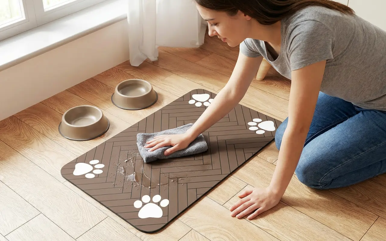 Covoraș impermeabil anti-alunecare pentru bolul de mâncare al câinelui