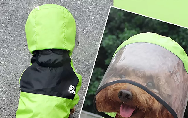 O glugă mare, transparentă va acoperi complet capul animalului. Ajută la protejarea câinelui de vremea capricioasă fără a-i obstrucționa vederea. Poate explora ușor afară, ploaie sau soare.